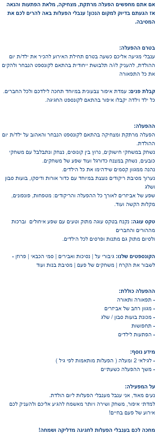 ענבלי הפעלות ליומולדת